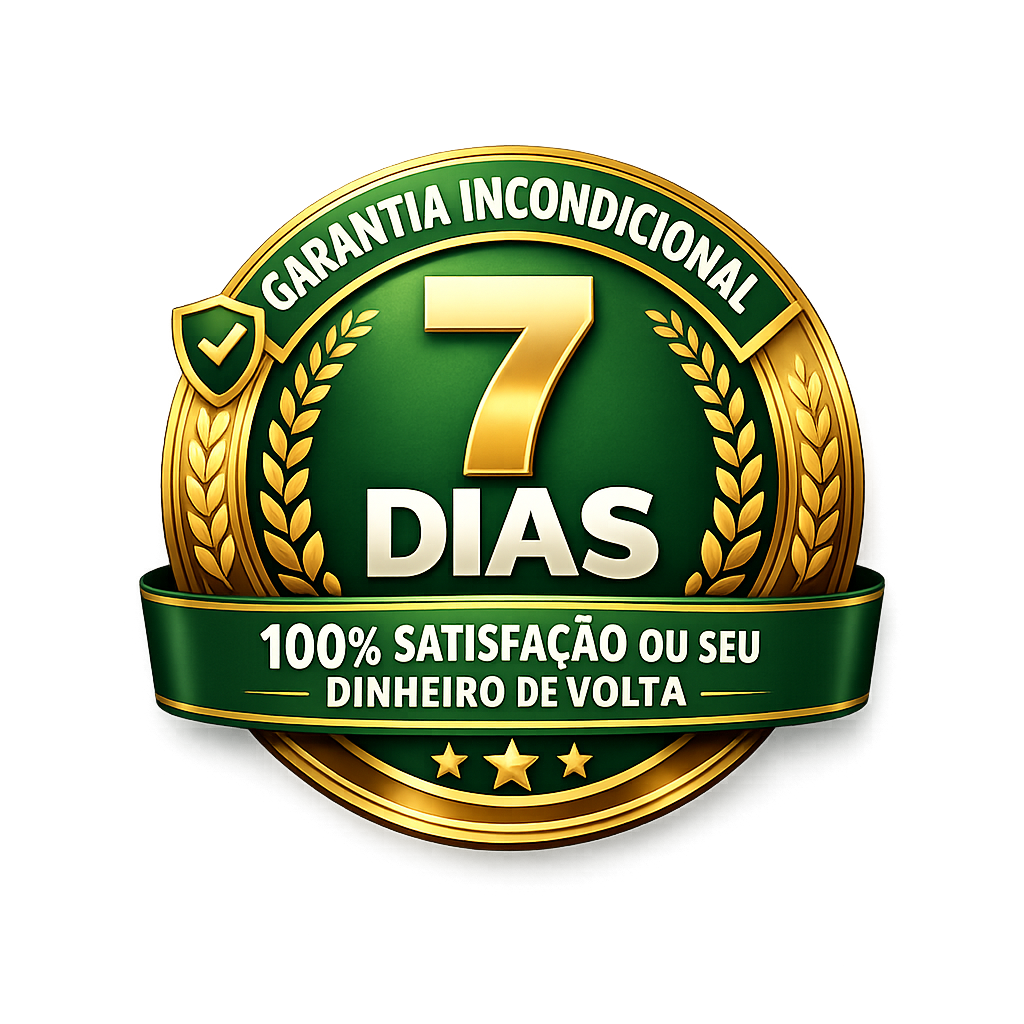 Se por qualquer motivo você achar que o material não é para você, basta solicitar o reembolso dentro desse prazo e 100% do seu dinheiro será devolvido, sem perguntas e sem complicação.